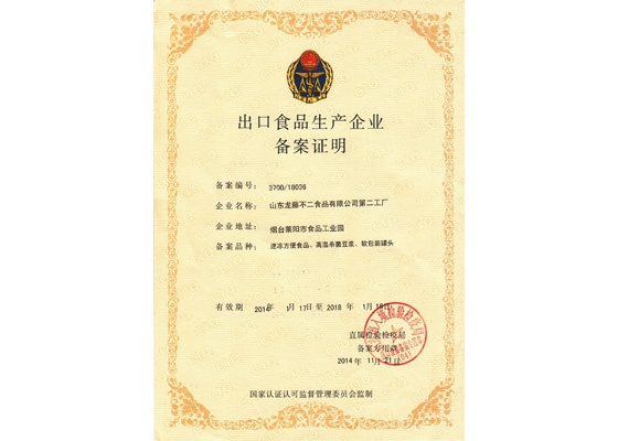 014年11月21日,山東龍騰不二食品有限公司第二工廠收到山東出入境檢驗檢疫局《出口食品生產(chǎn)企業(yè)備案證明》。這意味著該工廠生產(chǎn)的軟包裝罐頭,成功打開了出口日本的“通道”。